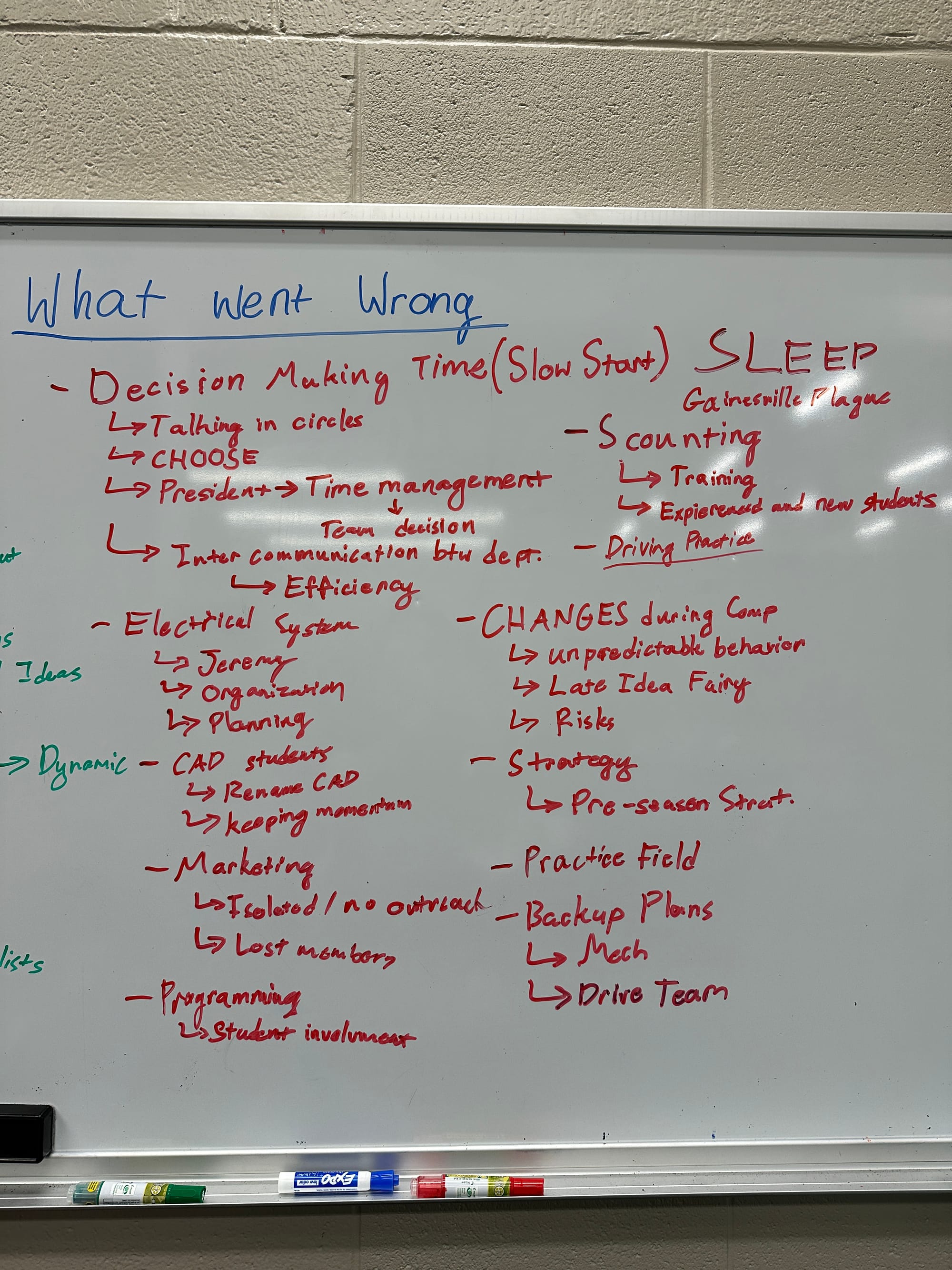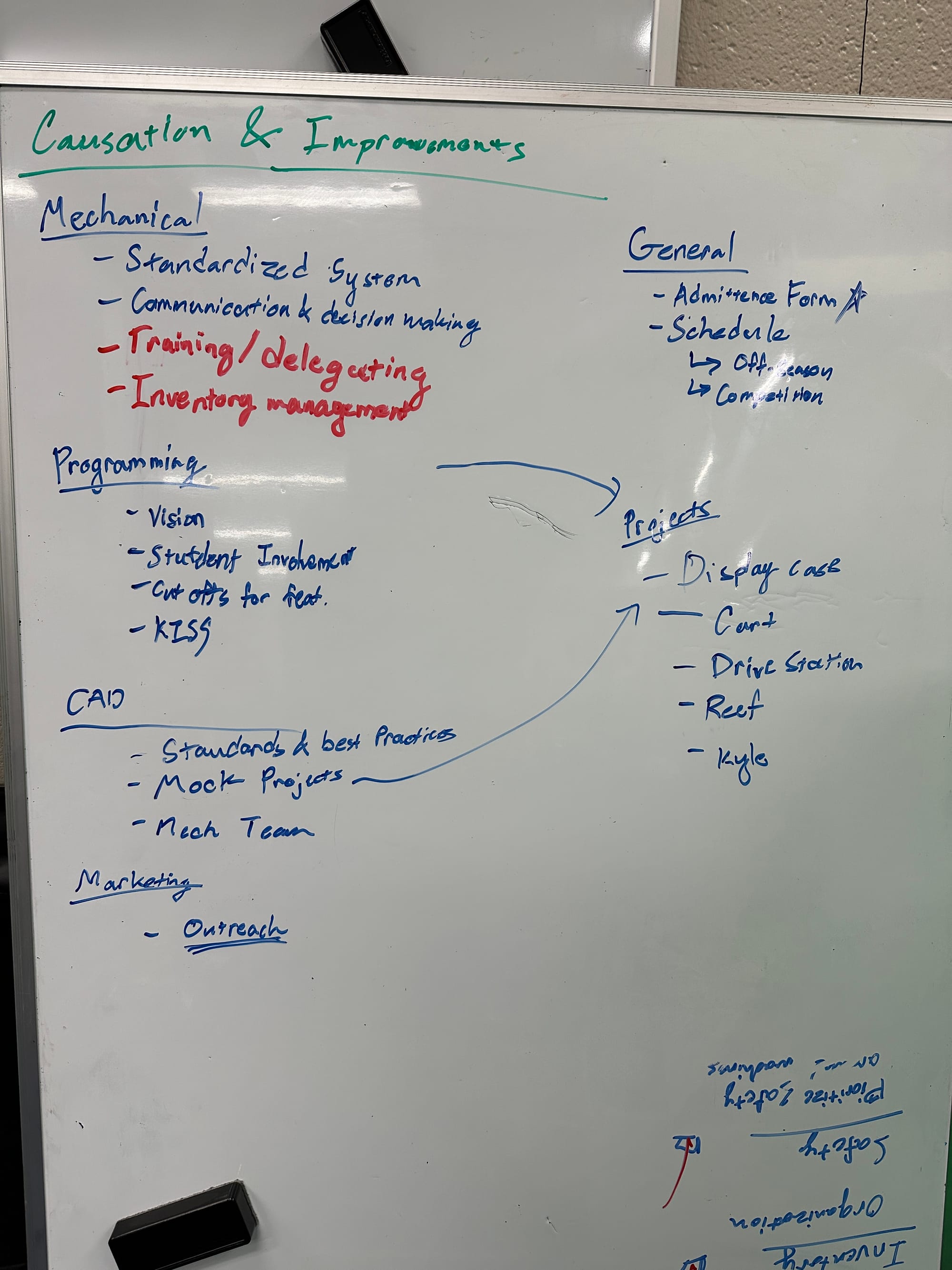 - Training: Many of the issues we've encountered this season would have been avoided by training, specifically in conventions, strategy, design, and more. Improving our courses and teaching can help our in-season performance.