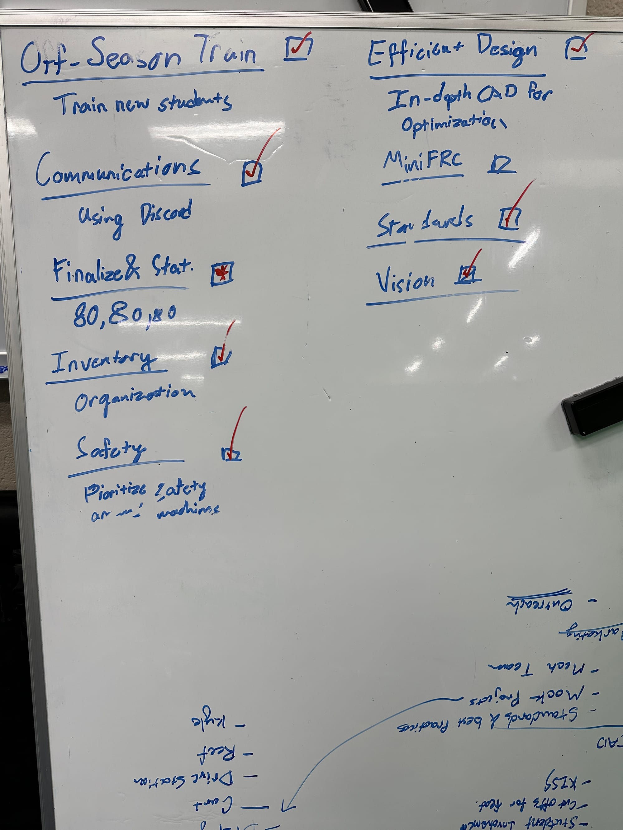 - Determine specific projects for the offseason and how they'll be organized.